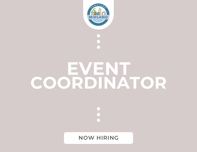 Please submit your résumé and cover letter to manager@downtownmidland.ca by Wednesday, May 15, 2025 at 5 p.m. with the subject line “Event Coordinator Application Submission”.